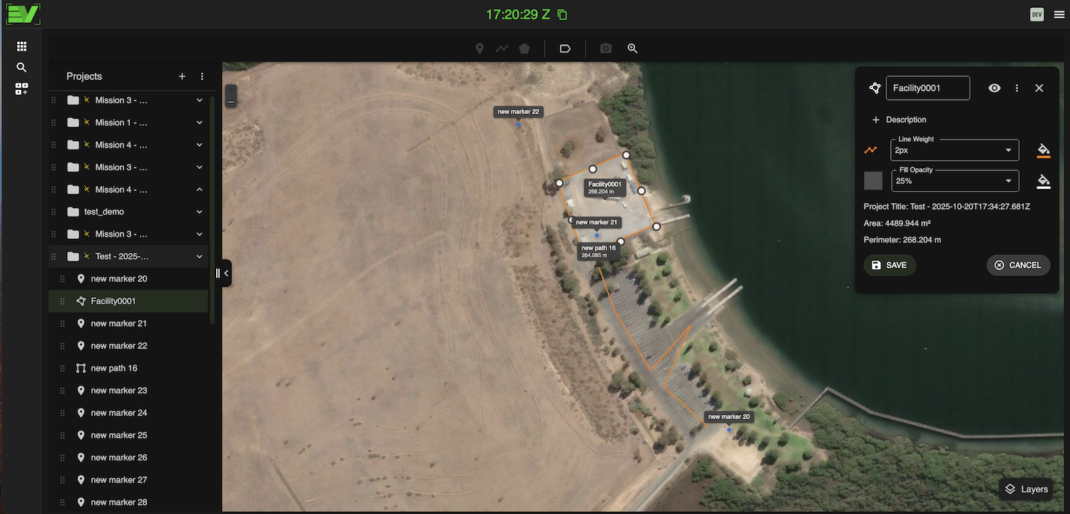 -Draw and edit points, polygons, polylines, and more. All objects can be nicely organized and associated with a specific mission's products. Or, create project folders and subfolders and organize them in any way to suit your workflow. For sharing map objects, conveniently import or export KMZ or KML
